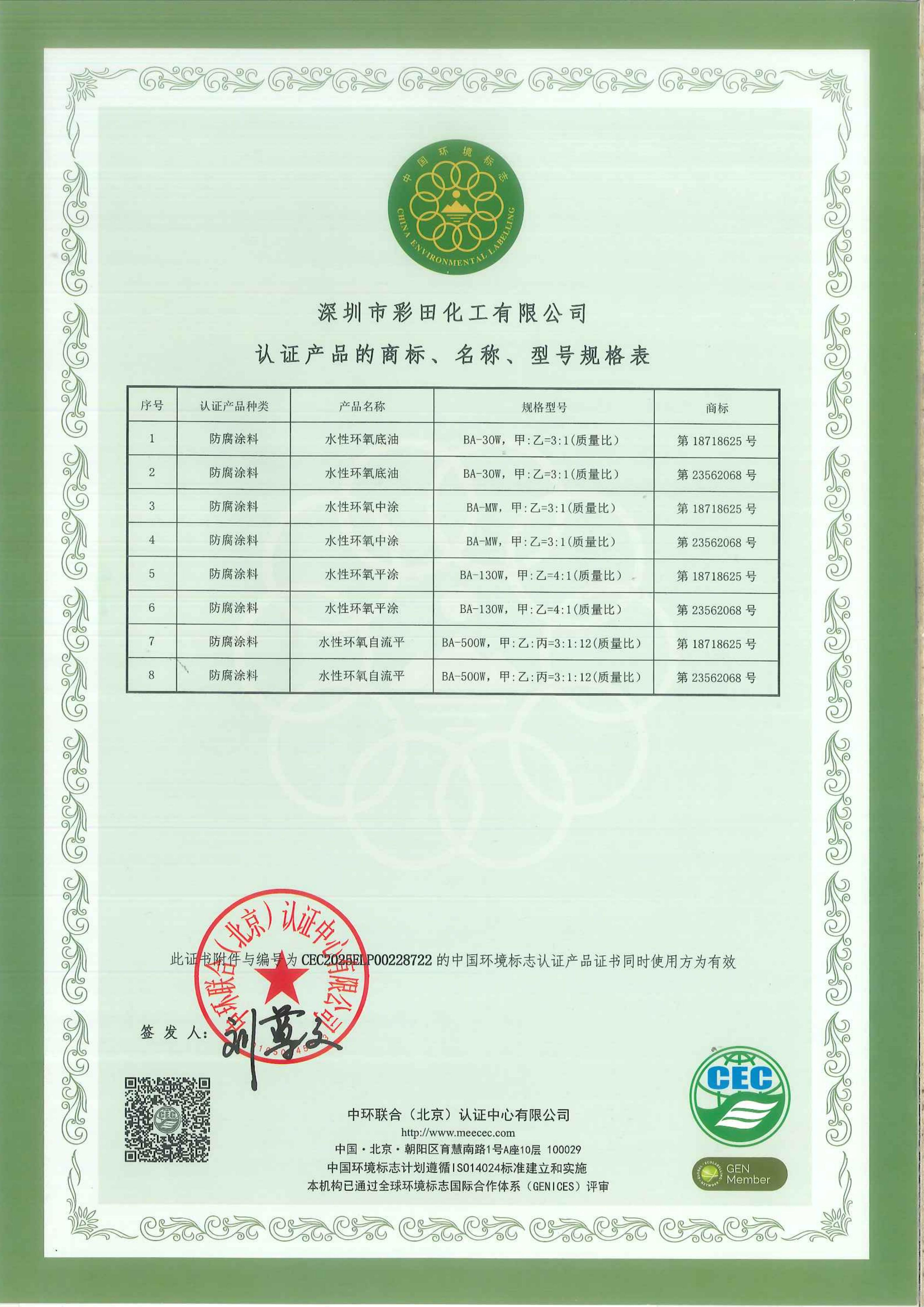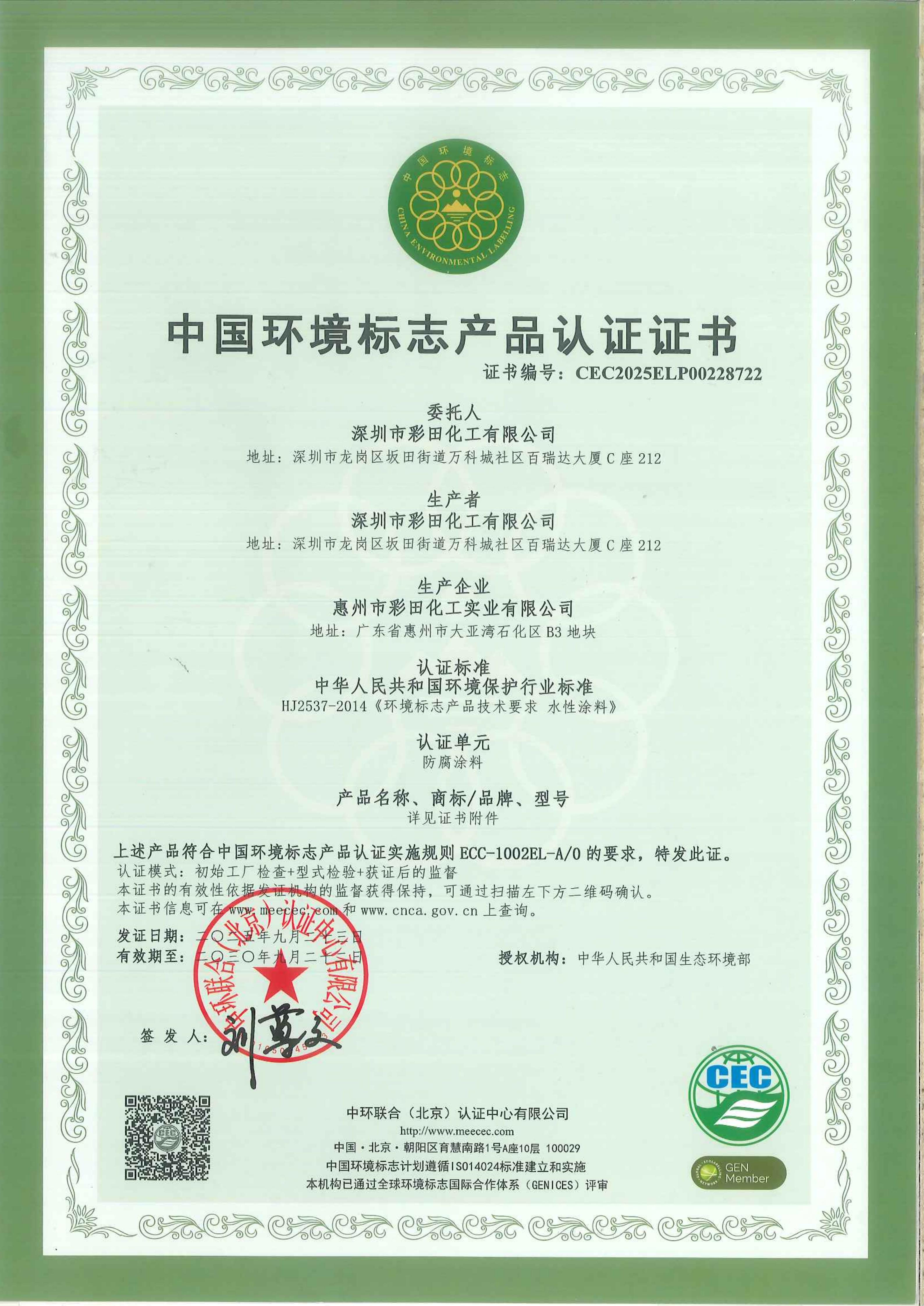 彩田化工通过十环认证,以技术创新响应政策号召,积极研发水性环保系列材料,用实际行动践行企业的环保承诺,与国务院“十四五”规划中“推广绿色化学品”的目标高度契合。