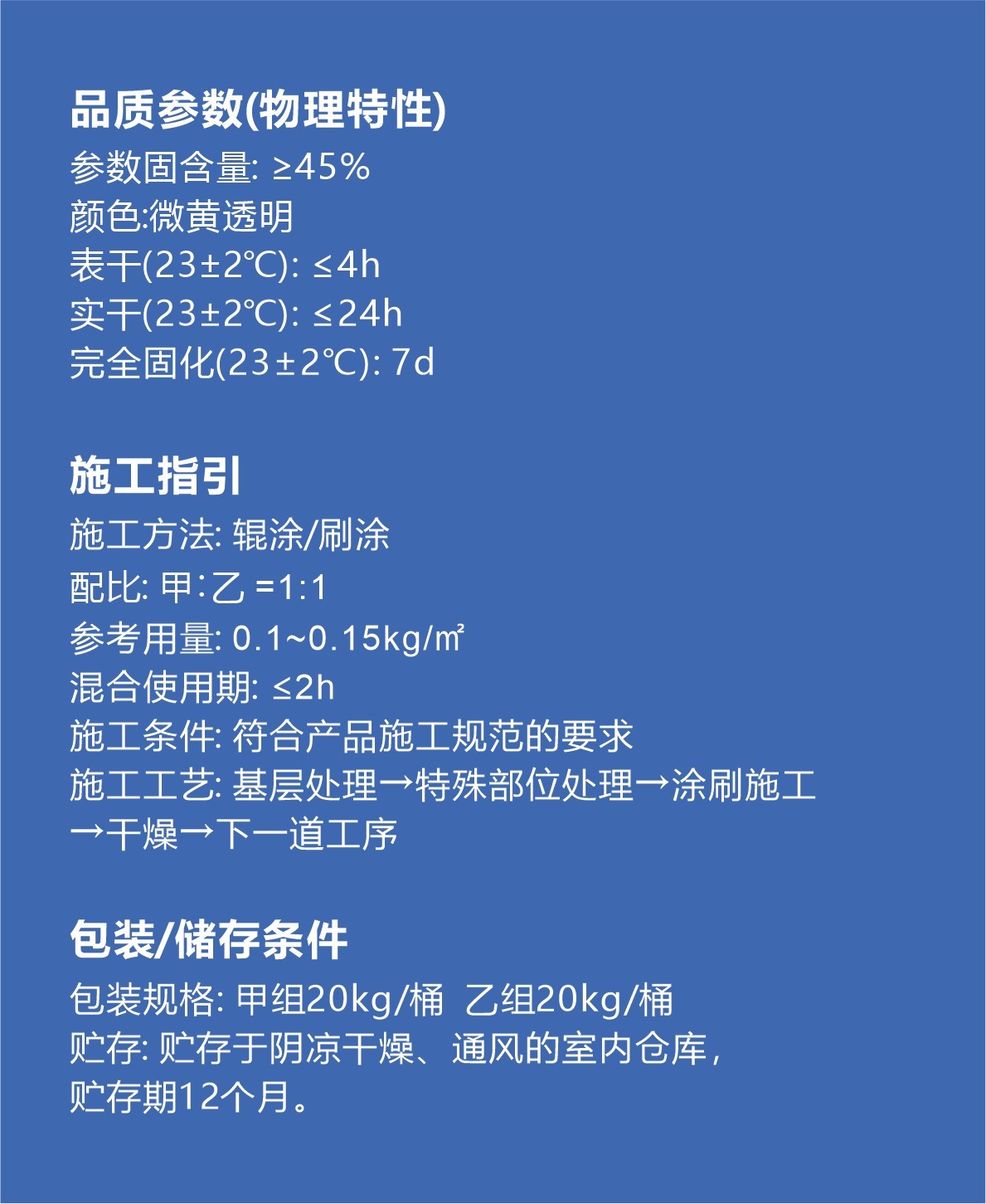 4、涂膜抗渗透性和耐腐蚀性能好,有极好附着力和耐浸泡性。