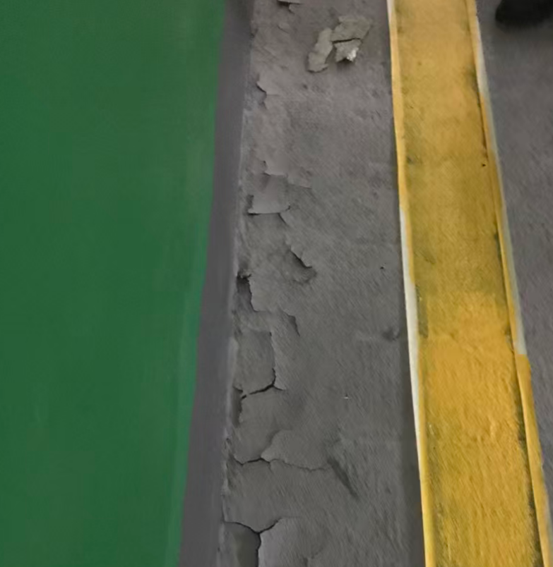 地下车库长期受车辆荷载振动,加剧了边缘部位的疲劳破坏;同时,潮湿环境可能削弱材料间的粘结力,加速翘边。